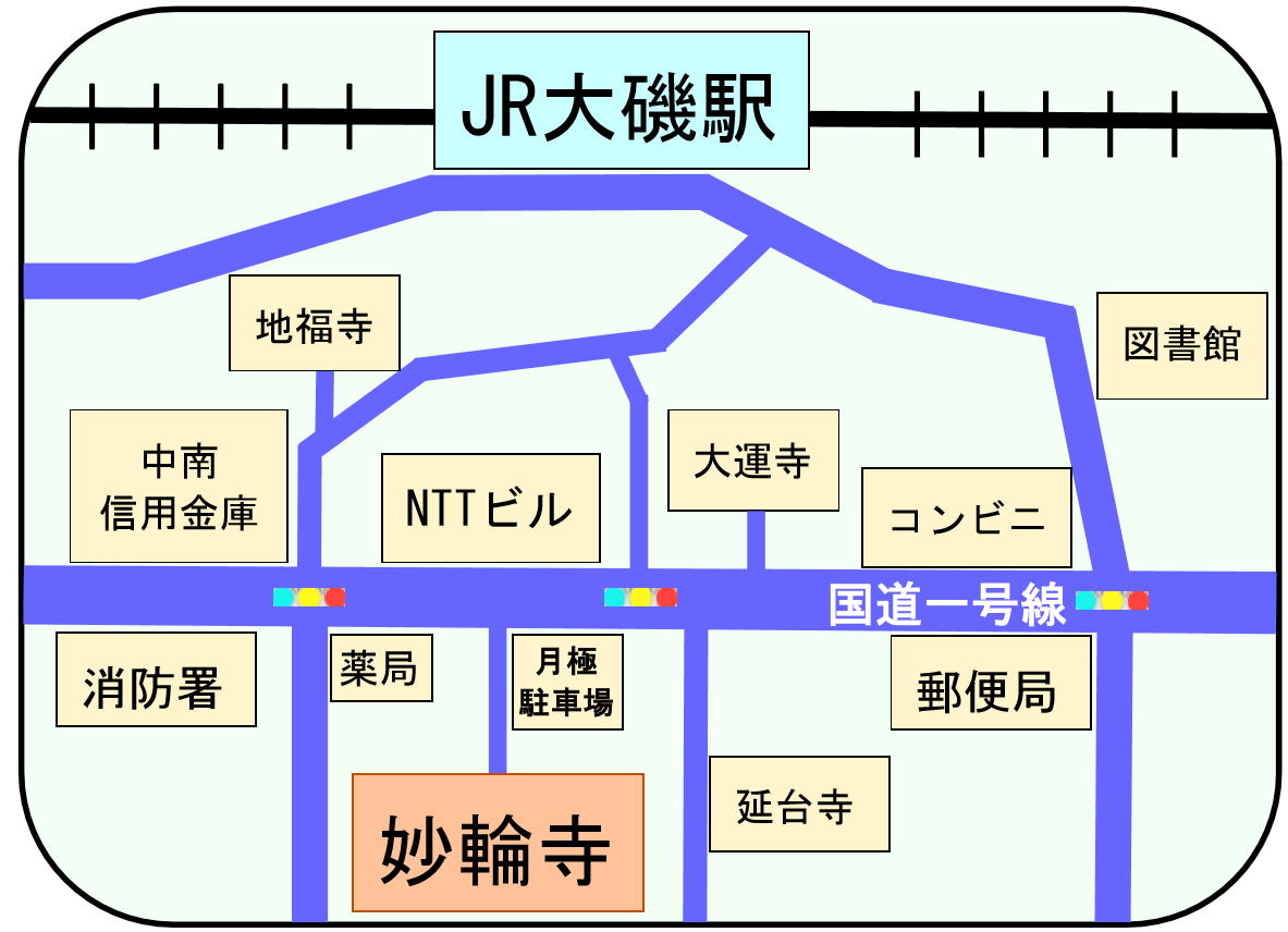 国道1号線平塚方面より「穐葉神社入口」信号から「大磯消防署前」信号の中間、